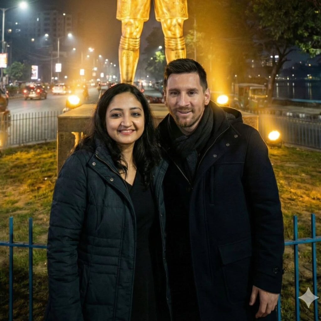 With Lionel Messi’s India tour creating massive excitement, female fans are also joining the trend by creating ultra-realistic AI selfies with Messi. Using Gemini Nano Banana Pro, girls can now generate stadium selfies, airport moments, and high-energy fan photos that look completely real.